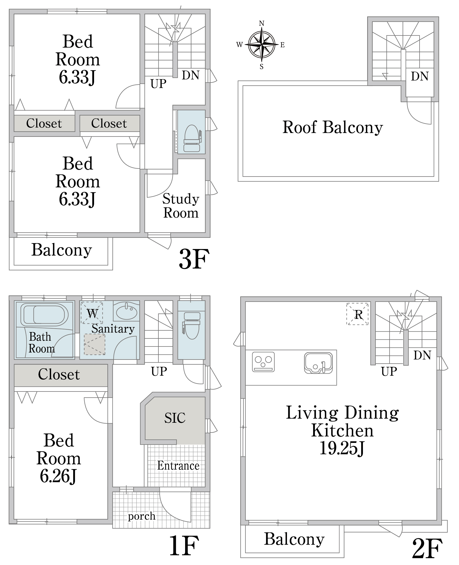 ・3階建で屋上バルコニー付の3SLDK+SIC